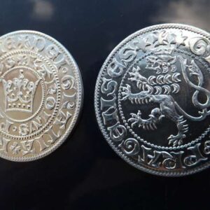 Peníz Václava IV. reprezentuje podíl Pražského groše. Provedení cín, cena je za 2 kusy.