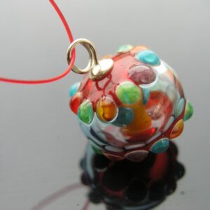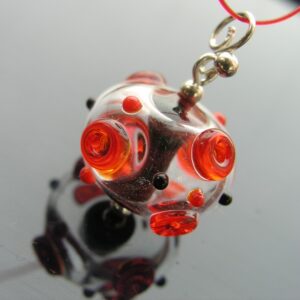 Stříbrný přívěsek Ag 925/1000 s dutou ručně vinutou perlou z italského skla. Barva čirá a červená. Dodáváme v dárkové krabičce. Délka 3 cm, velikost vinutky 15 x 22 mm.