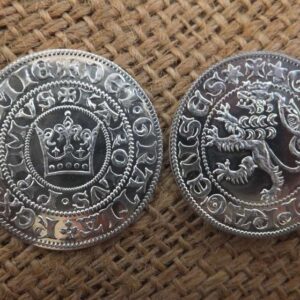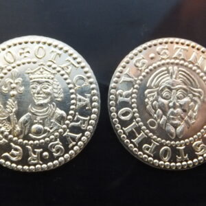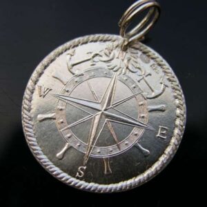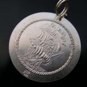 Pirátská mince stříbrný přívěsek s plachetnicí ve vlnách a směrovou růžicí. Opatřeno autorskou a ryzostní značkou a státním puncem. Mince je ze stříbra ryzosti Ag 925/1000, odražena z raznice, vyryté klasickou středověkou technologií. Pro tuto minci jsem zhotovila dvojitý stříbrný kroužek o vnitřním průměru 3-4 mm, zakončený stříbrnou kuličkou, která je drobným estetickým prvkem a zároveň brání vyvléknutí kroužku. Pro…