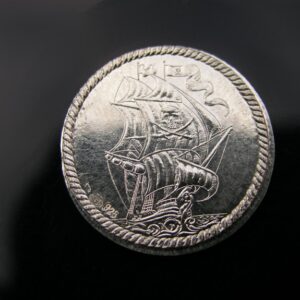 Aztécký kalendář a loď mince ražená ze stříbra Ag 925/1000 z ručně ryté raznice. Zpodobňuje tzv. Aztécký kalendář uložený v národním antropologickém muzeu Chapultepec-Park v Mexiku. Tento monument má 3,6 m v průměru a váhu 24 tun. Na druhé straně je pirátská plachetnice ve vlnách. Mince obsahuje všechny náležité puncy. Průměr cca 25 mm, síla 1 mm, váha…