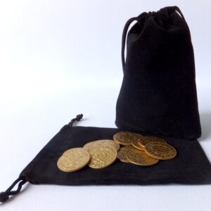 Tři měšce z jednostranného sametu, černé, modré a vínové barvy, ke stažení provázkem. Vhodný pro mince, které u nás můžete zakoupit. Rovněž se do něj mohou ukrýt různé poklady či šperky. Zabalte svůj dárek netradičně… Rozměry: 13 x 9 cm.