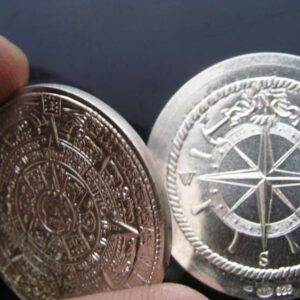 Stříbrná medaile s aztéckým kalendářem a směrovou růžicí Ag 925/1000 2 mm Medaile ražená ze stříbra Ag 925/1000 z ručně ryté raznice. Průměr cca 30 mm, síla 2 mm, váha 14,7 g. Zpodobňuje tzv. Aztécký kalendář uložený v národním antropologickém muzeu Chapultepec-Park v Mexiku. Tento monument má 3,6 m v průměru a váhu 24 tun. Na druhé straně…