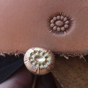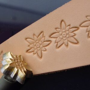 Razidlo s plastickým motivem středu květu o průměru 7,5 mm. Pro Vaše tvoření z kůže. Razidlem lze vytváře různé kombinace tvarů, kříže vícekvěty, cesty atd. Květ je z mosazi na ocelovém trnu. Velikost celého nástroje je 100 x 10 x 10 mm. VYUŽITÍ: opasky náramky, v sedlářství, custom saddlery, ale i na zdobení dortů a zákusků…