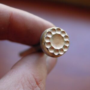 Razidlo s plastickým motivem oválného středu květu, kolem kterého se ručně dotvářejí okvětní lístky. Hodí se na zdobení sedel, kabelek, opasků či náramků, je možné jej použít i k otiskování do měkkých modelovacích hmot a keramiky. Velikost otisku: 13 x 11 mm Plastický motiv je z mosazi na ocelovém trnu.