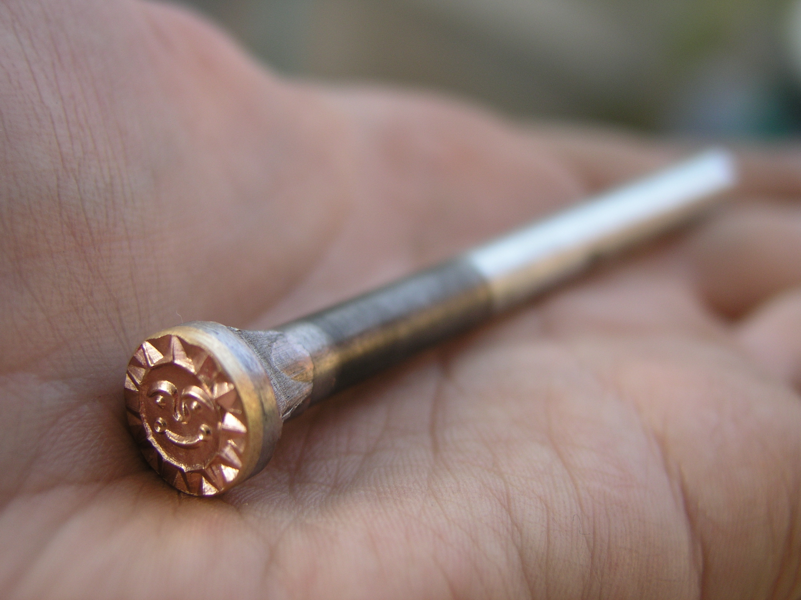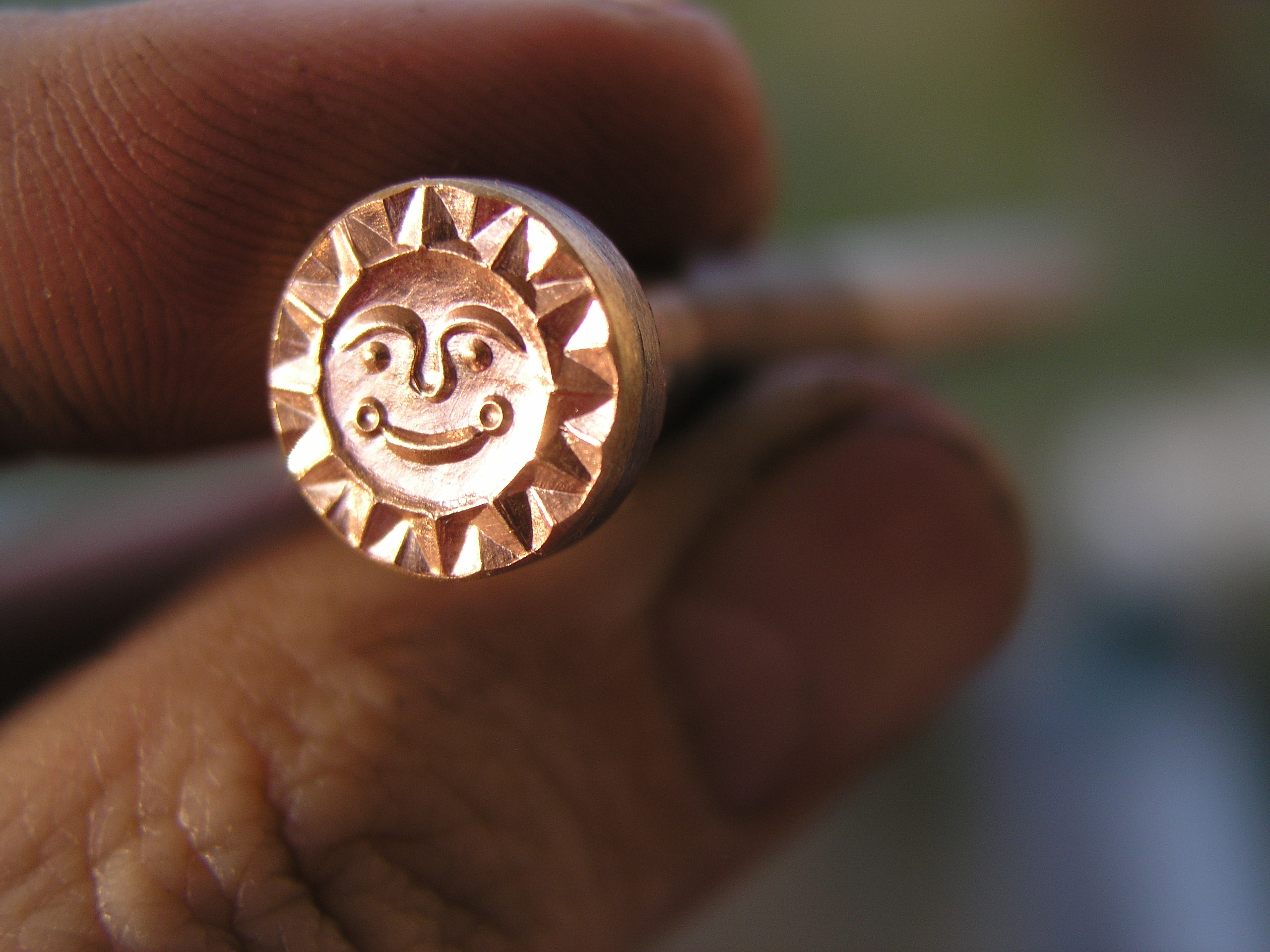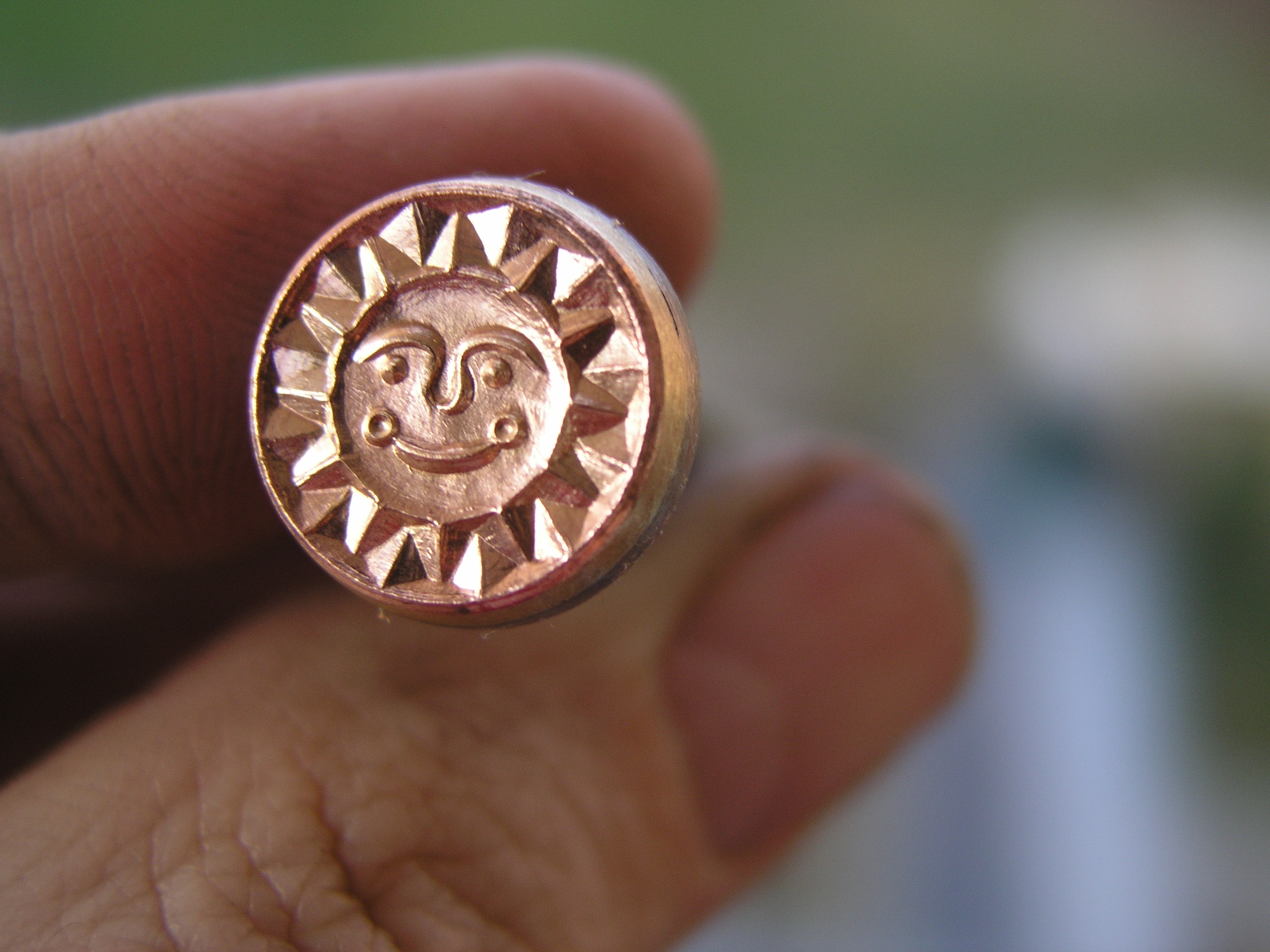 Sluníčko Slunce razidlo do kůže využijte pro ražbu do vašich kožených výrobků a dále na otiskování do keramiky, Fima, plastelíny, marcipánu, zkrátka do všech měkkých modelovacích hmot, které chcete prozářit tímto úsměvem a třeba obdarovat své blízké. Průměr otisku 14 mm.