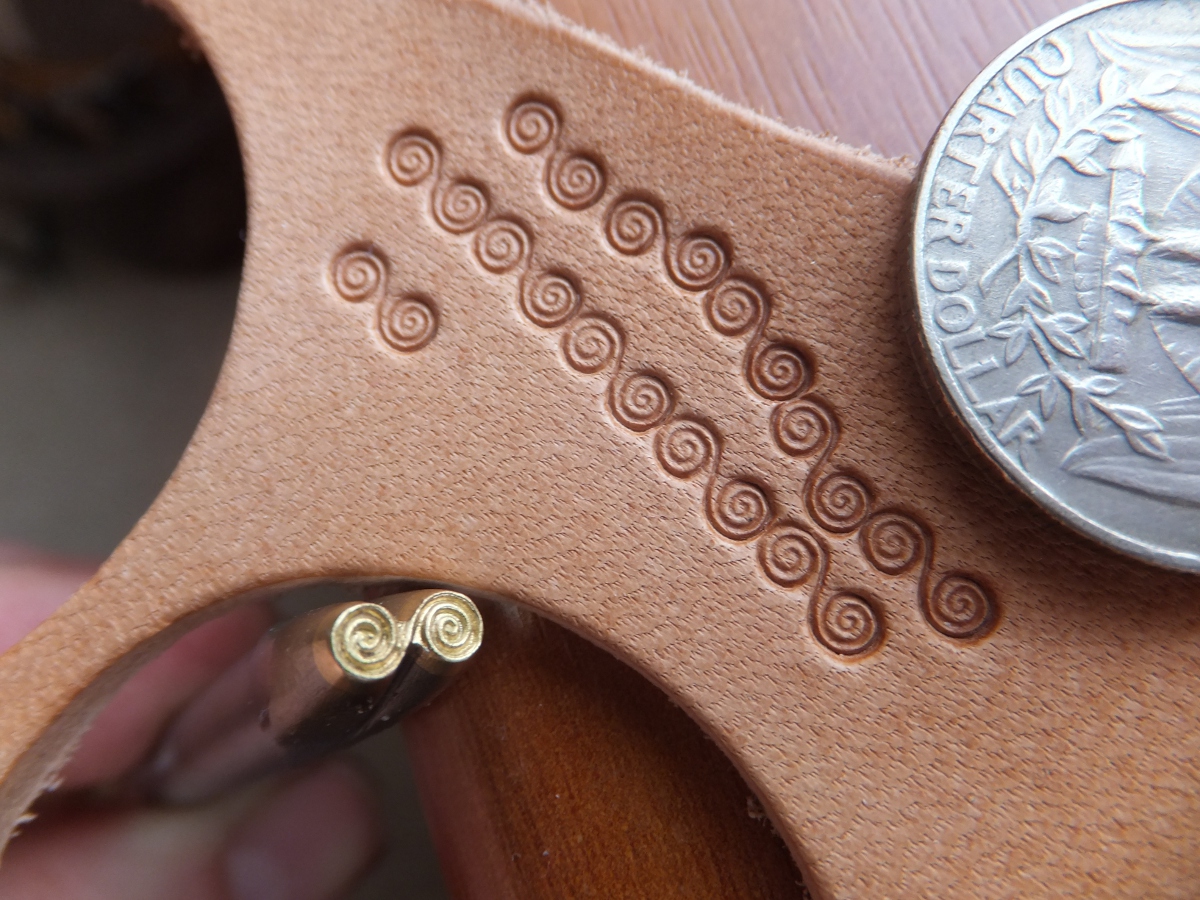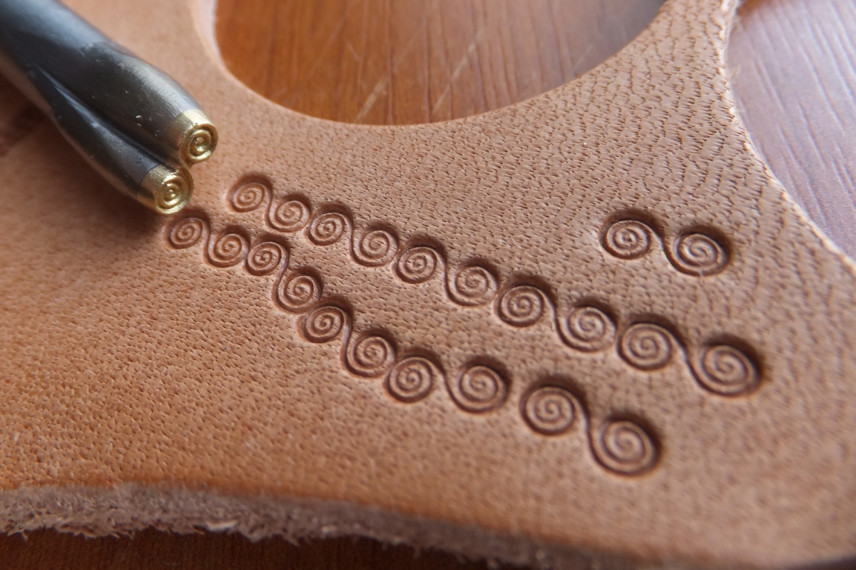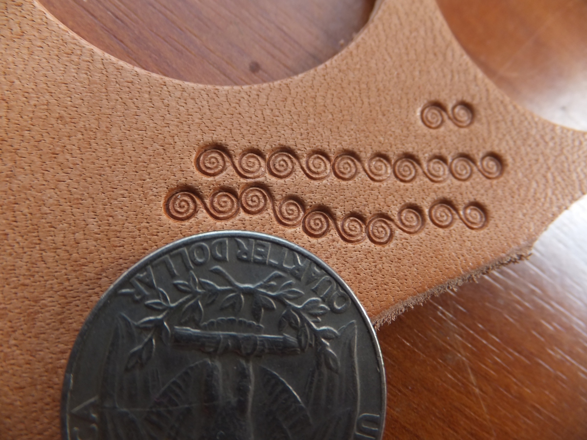 Speciální razidlo do kůže s plastickým dezénem spirál pro zdobení mlaých výrobků z kůže (peněženky náramky atd.).