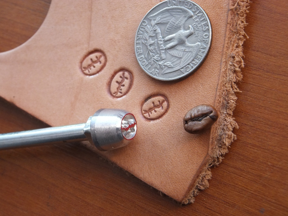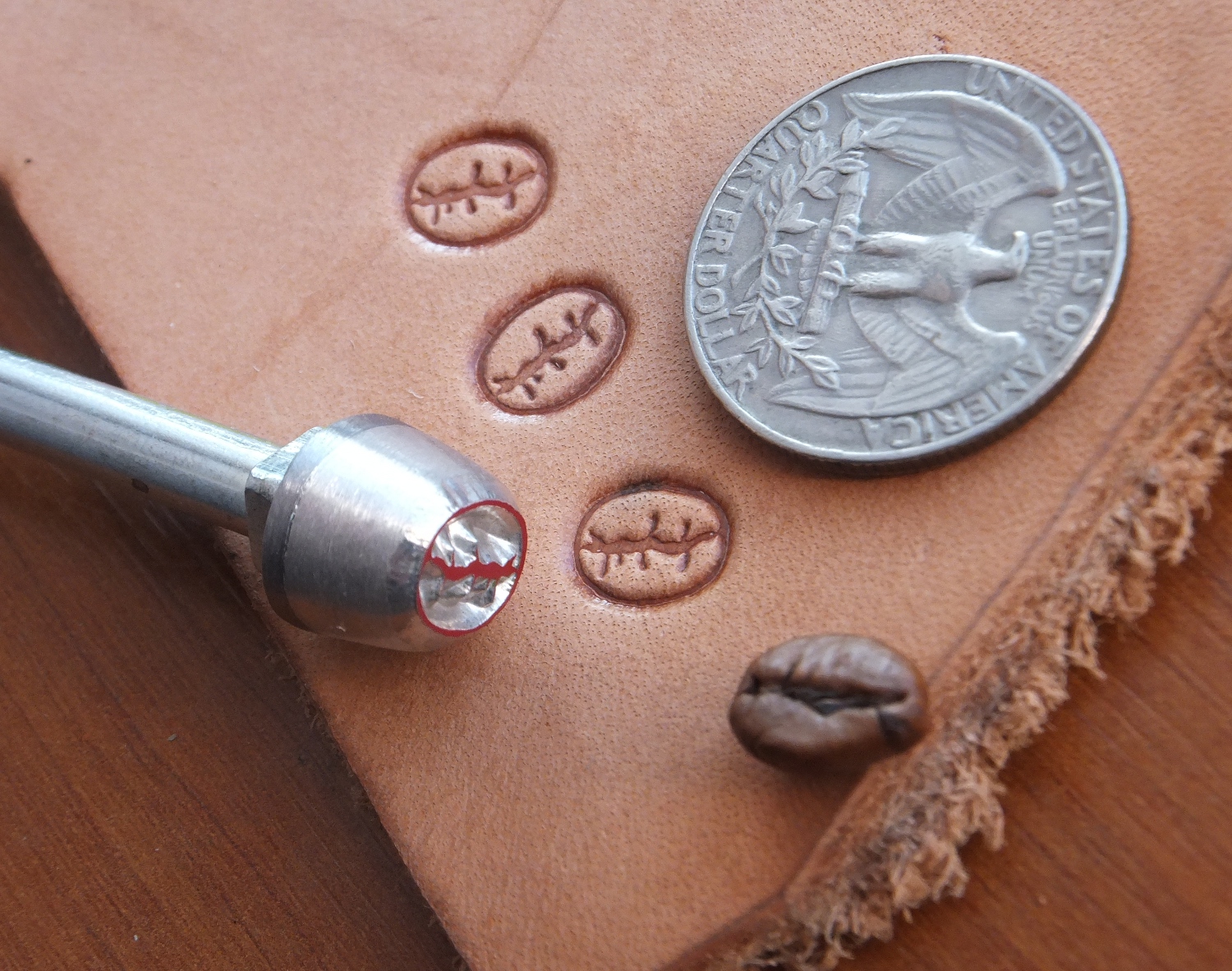 Ruční razidlo do kůže s plošným motivem kávového zrna o velikosti motivu 7 x 9 mm.