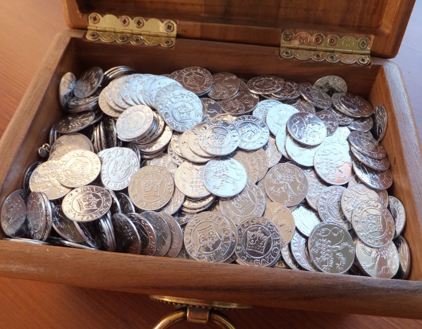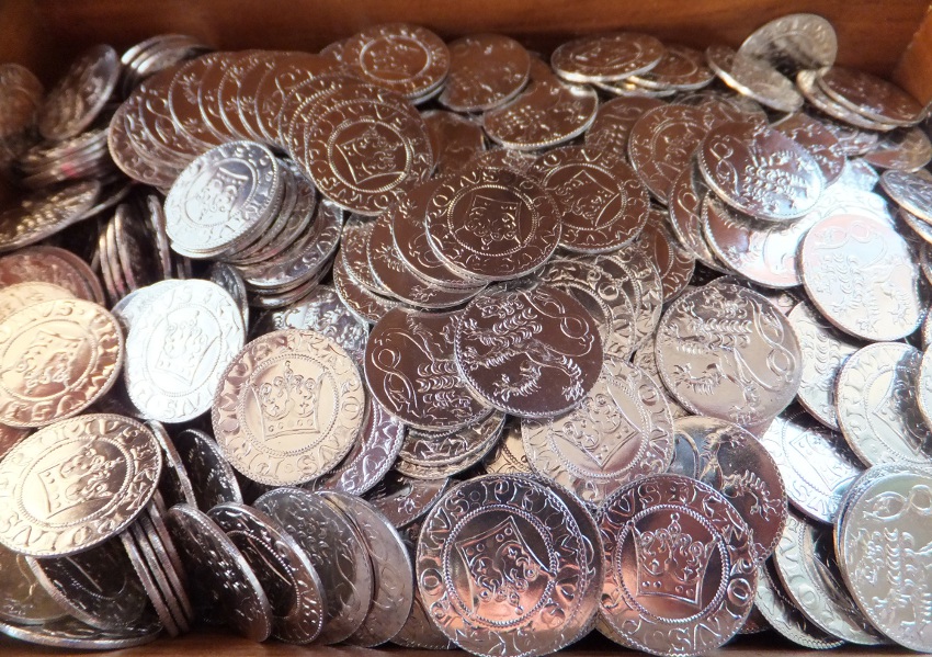 Poklad – MALÉ GROŠE – 100 ks tento stříbrný poklad pro malé piráty a rytíře je drobnou mincí Pražského groše