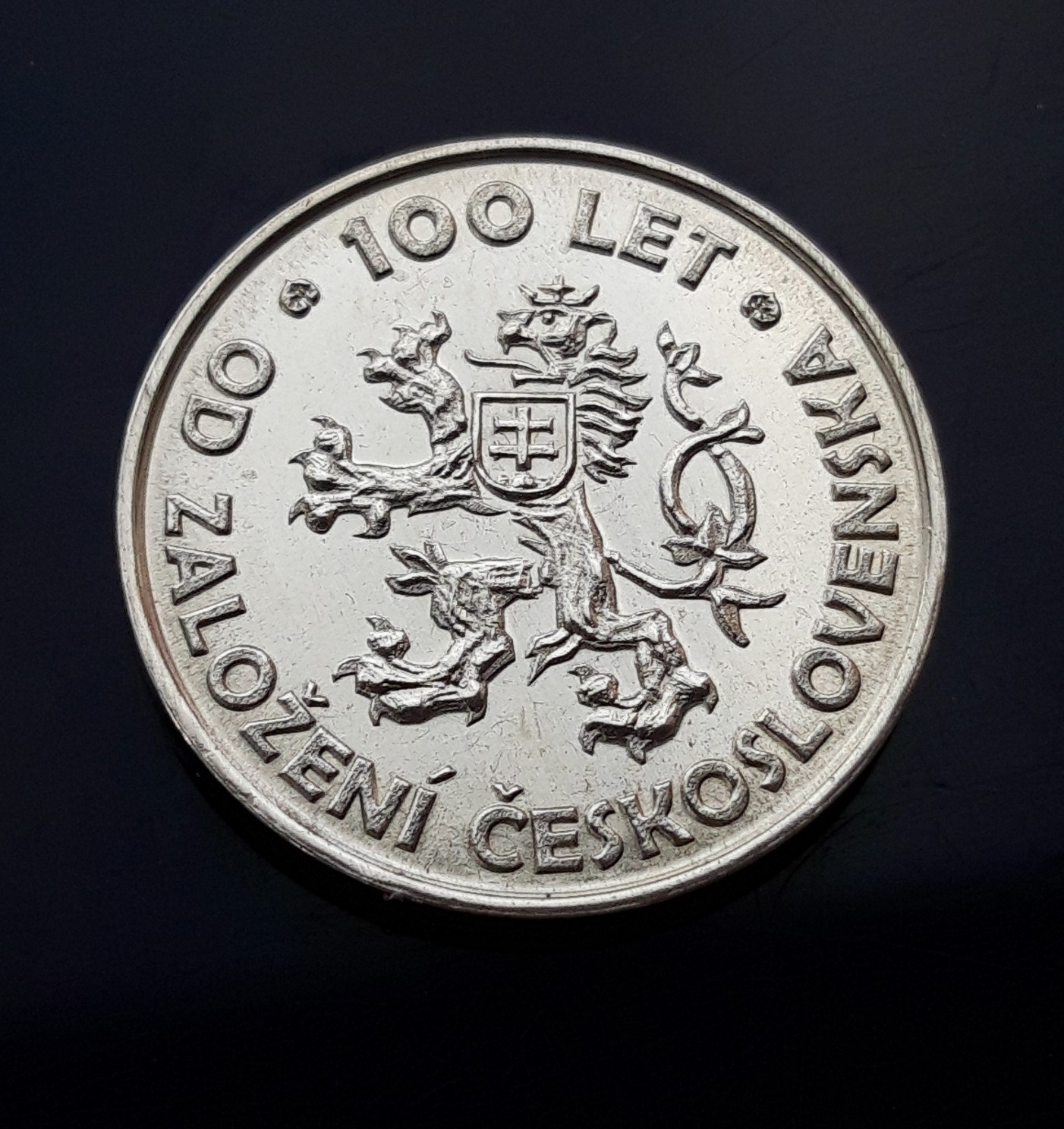 Stříbrná medaile 100 let Československa ke stému výročí založení republiky. Medaile je ze stříbra ryzosti Ag 925. Silver Medal 100 Years of Czechoslovakia.
