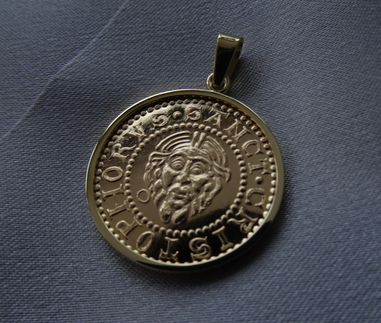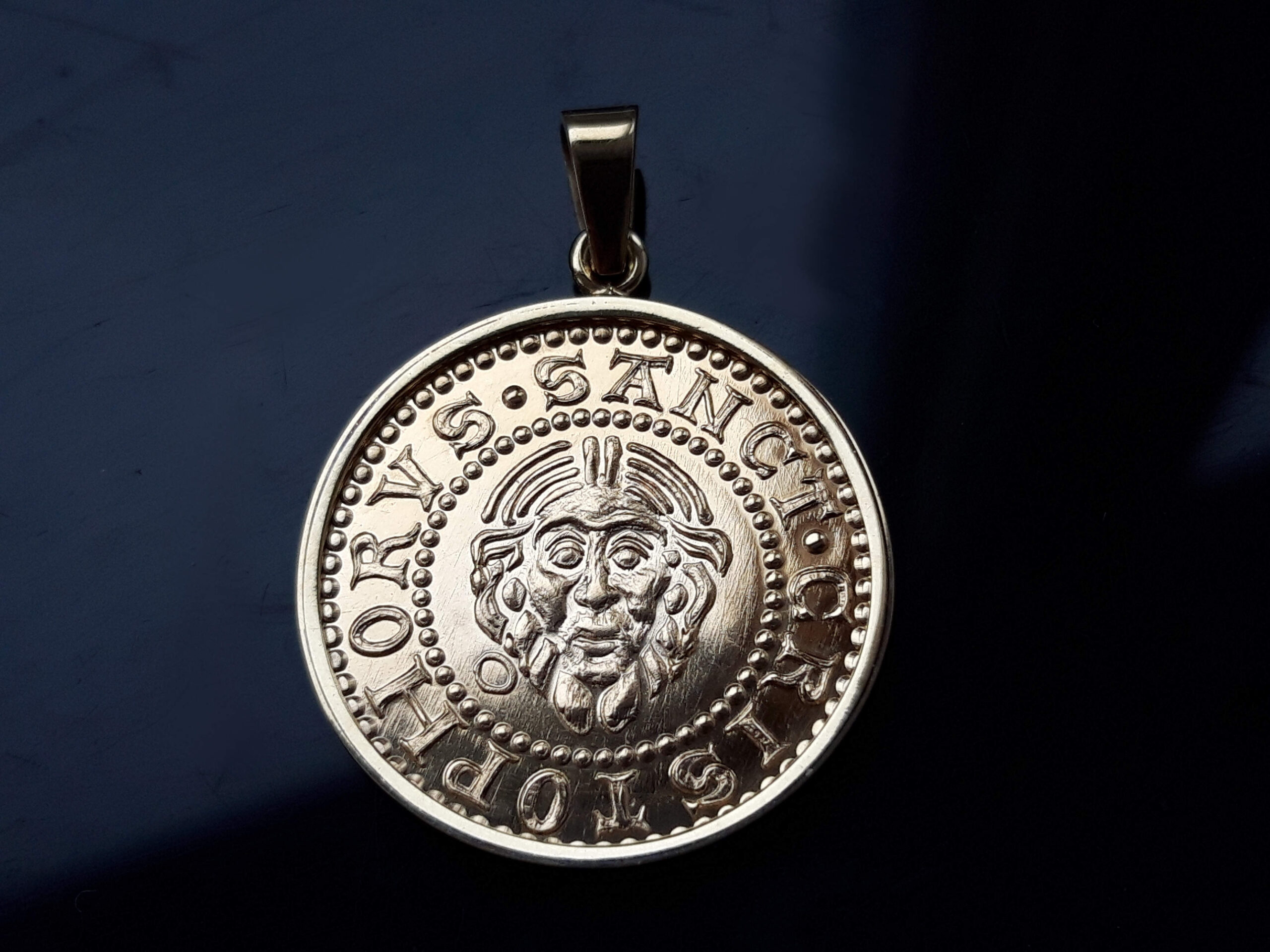 REVERZ – SANCT CRISTOPHORVS (svatý Kryštof), v opisu je hlava sv. Kryštofa, patrona poutníků, cestujících a pomocníka v nouzi. Dle legendy byl mohutné postavy a chtěl sloužit nejmocnějšímu králi. Jednou přes řeku s velkou námahou přenášel pouhé dítě, které se nakonec ukázalo být Ježíšem. Obr byl pokřtěn a dostal jméno Christophorus, což v řečtině znamená Ten, kdo nosí Krista.
