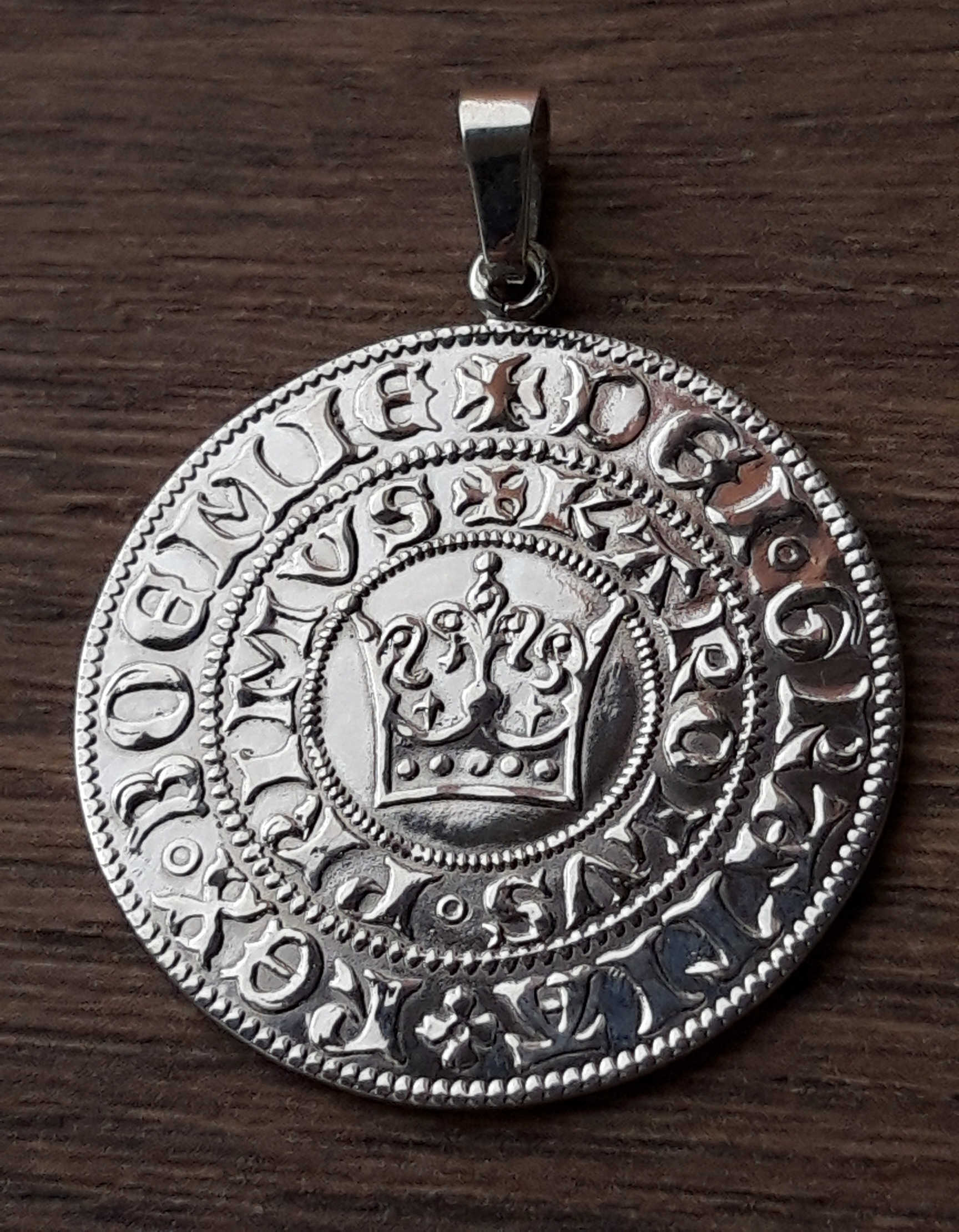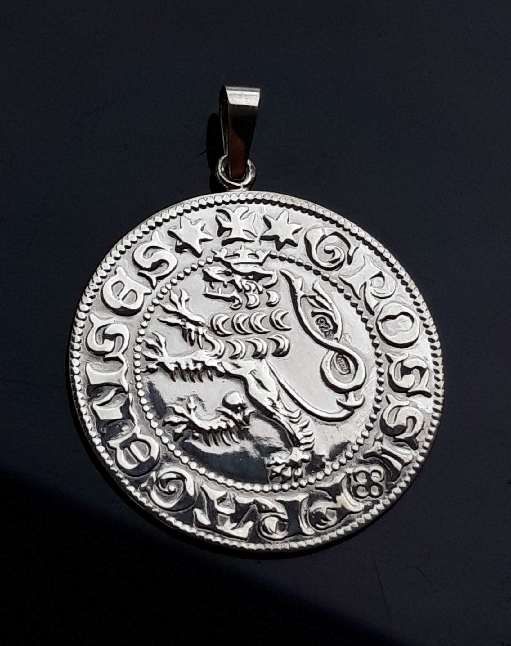 Pražský groš Karla IV. přívěsek je uměleckou replikou stříbrné české mince, která byla ražena králem Karlem IV.
