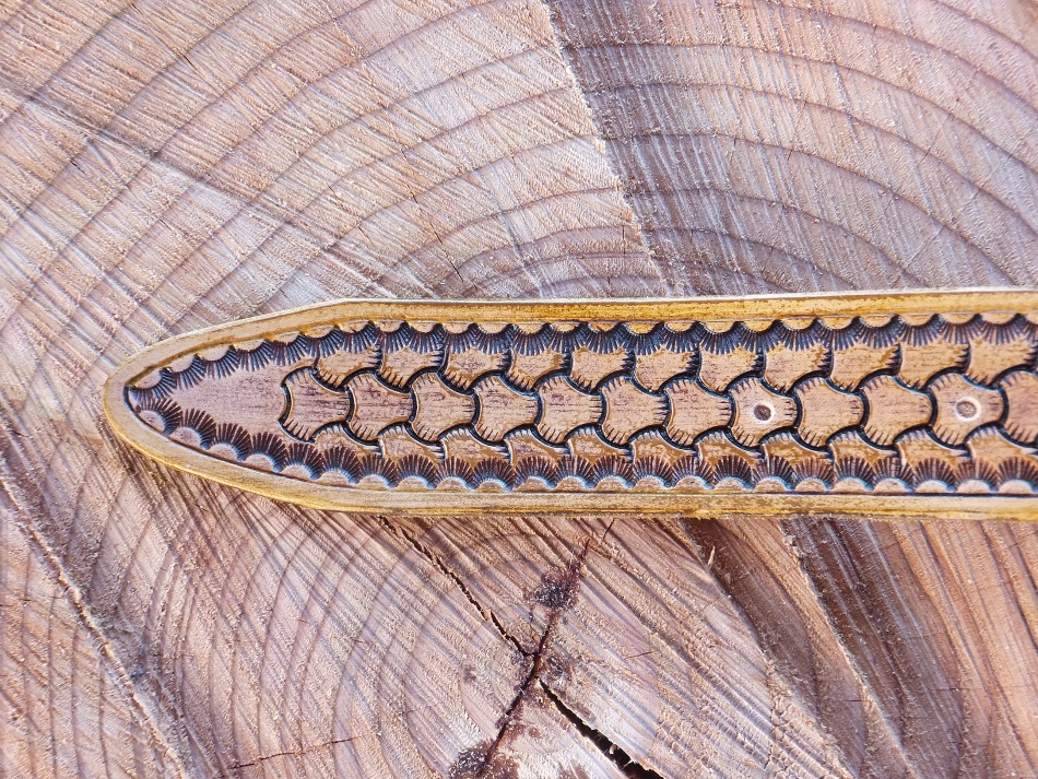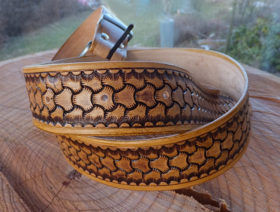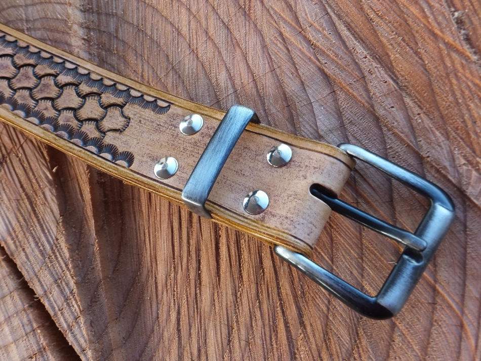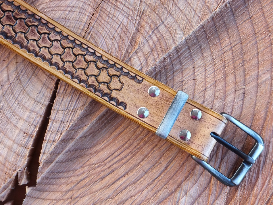 Kožený opasek z přírodní kůže s hnědou patinou. Zadní strana je bez povrchové úpravy.