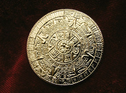 042-11 Ciferník Aztécký kalendář s lodí, pozlacený