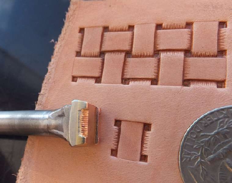 Razidlo s plastickým motivem propletených řemínků 9,5 x 9,5 mm, který v návaznosti vytváří plochu podobnou pletenému koši.