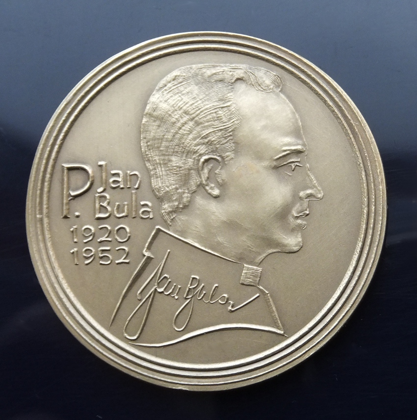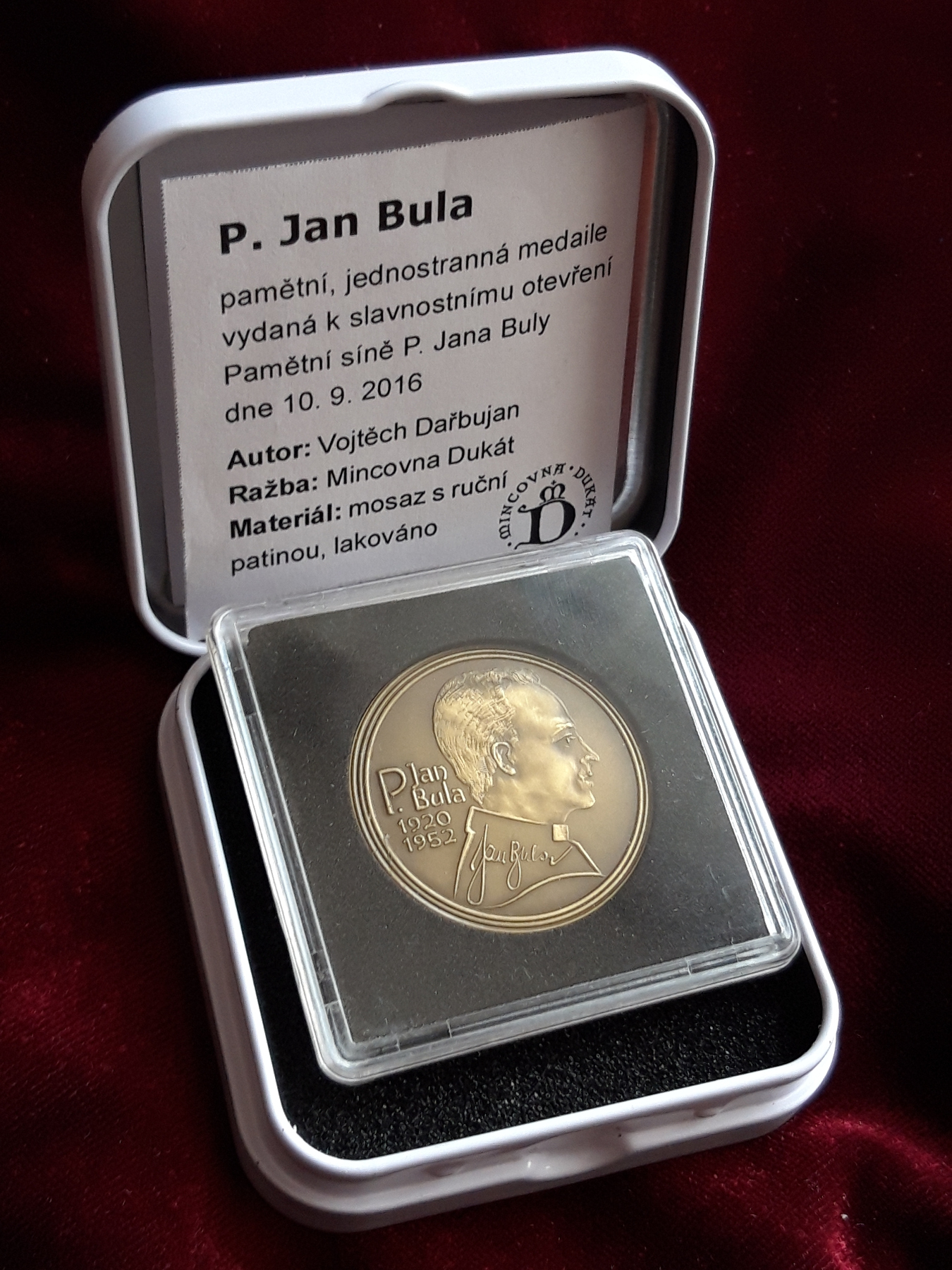 Jednostranná, mosazná, pamětní medaile P. Jana Buly byla vydána 10. 9. 2016 k příležitosti otevření jeho pamětní síně.