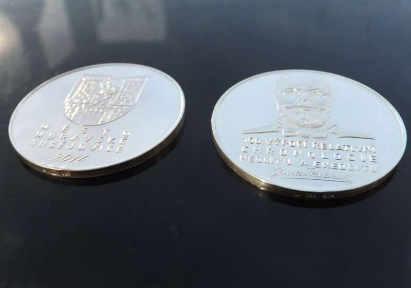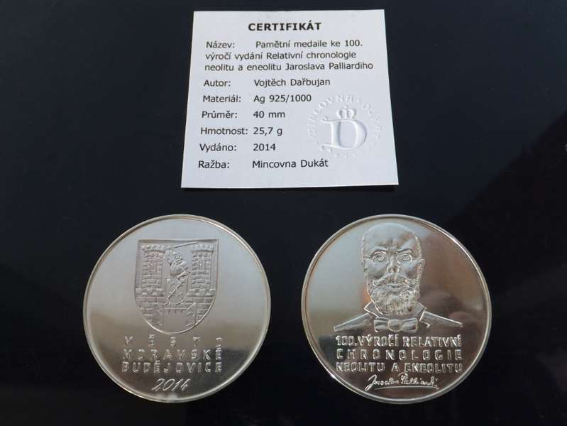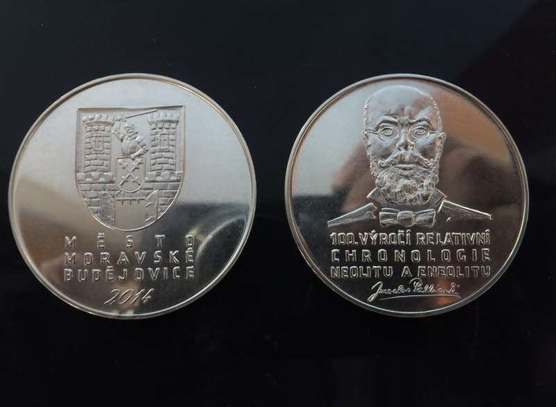 Ražená, stříbrná medaile vydaná ke 100. výročí vydání publikace Relativní chronologie neolitu a eneolitu.