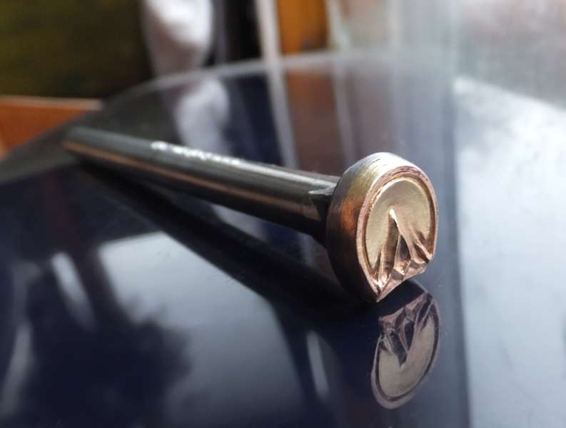 Razidlo s plastickým motivem kopyta koně, velikosti otisku 12 x 13 mm, velikost celého nástroje 100 x 14 x 14 mm. Pro Vaše tvoření z kůže, luxusní vazby knih. atd.