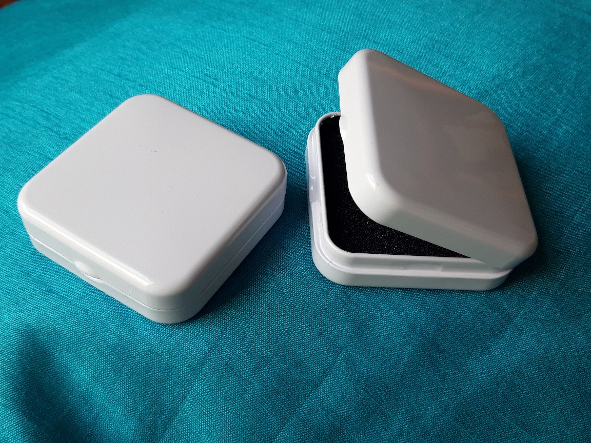Kovová krabička s bílým lesklým lakem pro dárkové balení slouží jako elegantní obaly. Uvnitř se nachází černá molitanová vložka, která zajišťuje bezpečné uložení obsahu a zároveň působí esteticky. Krabička skvěle poslouží pro prezentaci mincí, šperků, medailí nebo drobných dárků.