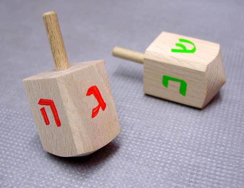 Drejdl – stará židovská hračka s hebrejskými písmeny na jednotlivých stranách. Písmena jsou ručně malovaná.