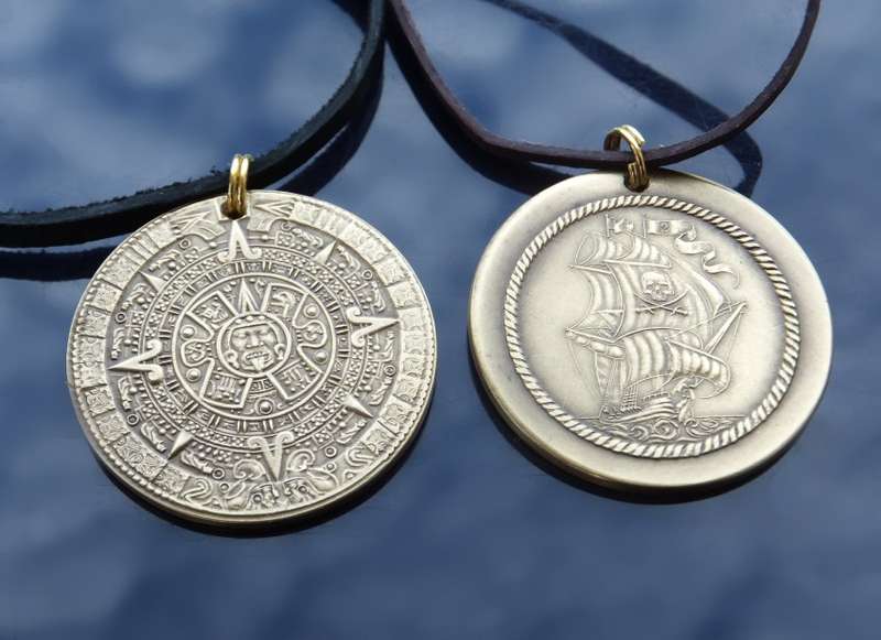 042-22 Medailon Aztécký kalendář mosaz patina