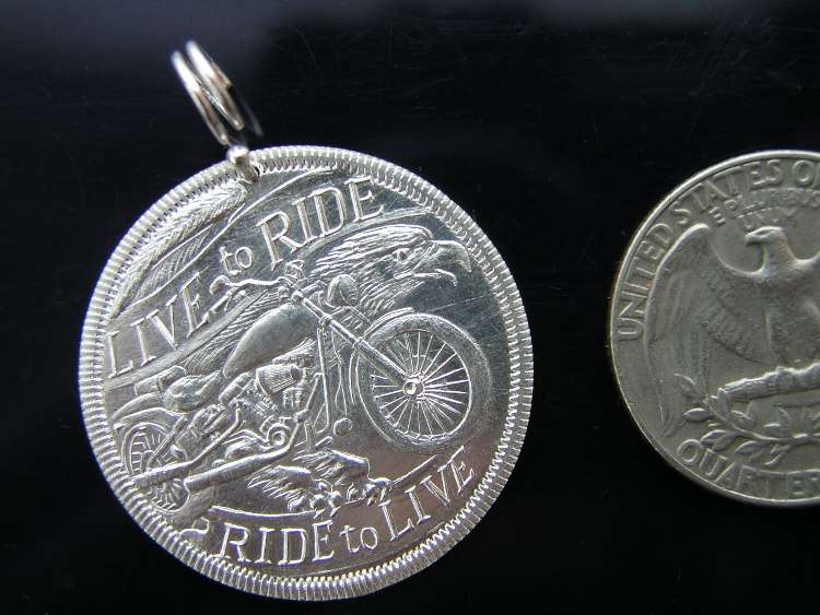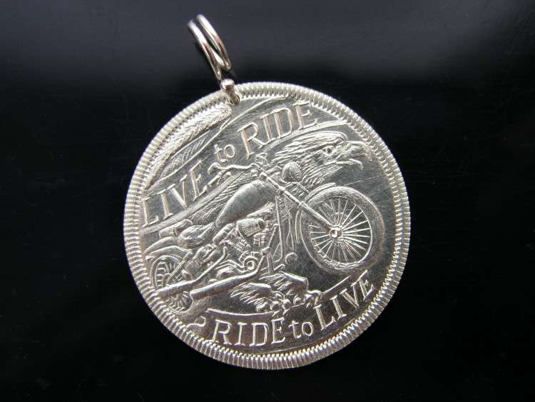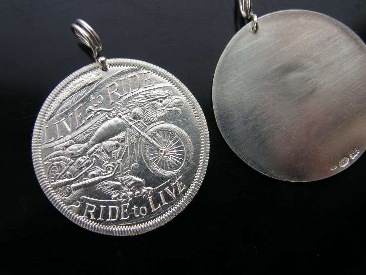 Medailon s motorkou stříbro – Motorkářský přívěsek – medailon s motorkou a orlem, pro milovníky motorek.