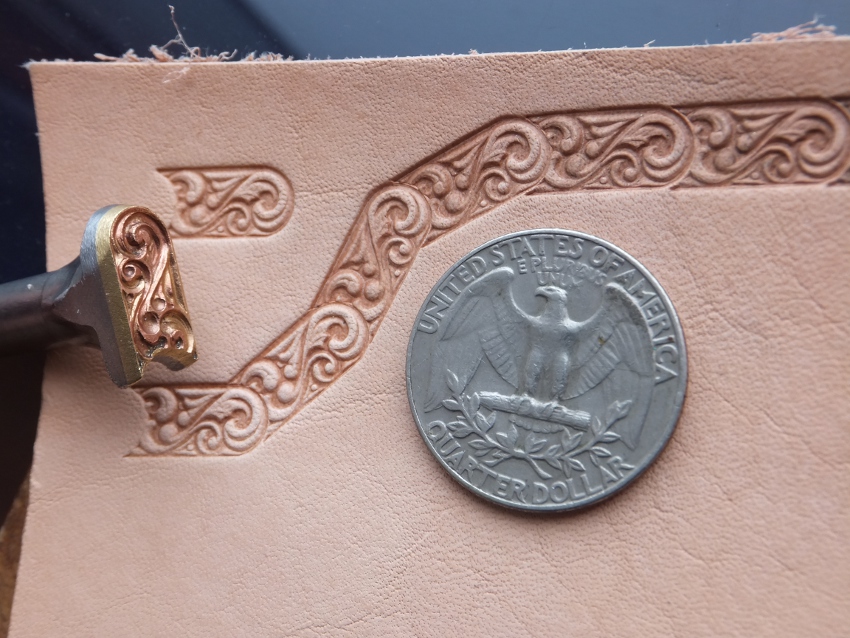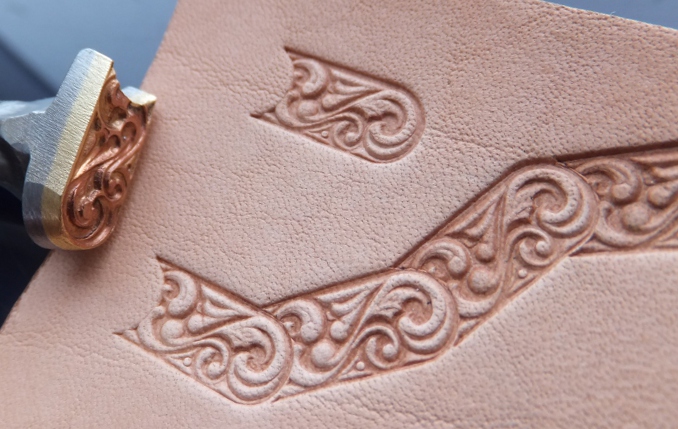 Razidlo do kůže s plastickým, ornamentálním motivem o velikosti 15 x 6 mm. Jeden konec razidla navazuje na druhý a lze jím vytvářet různé linie.