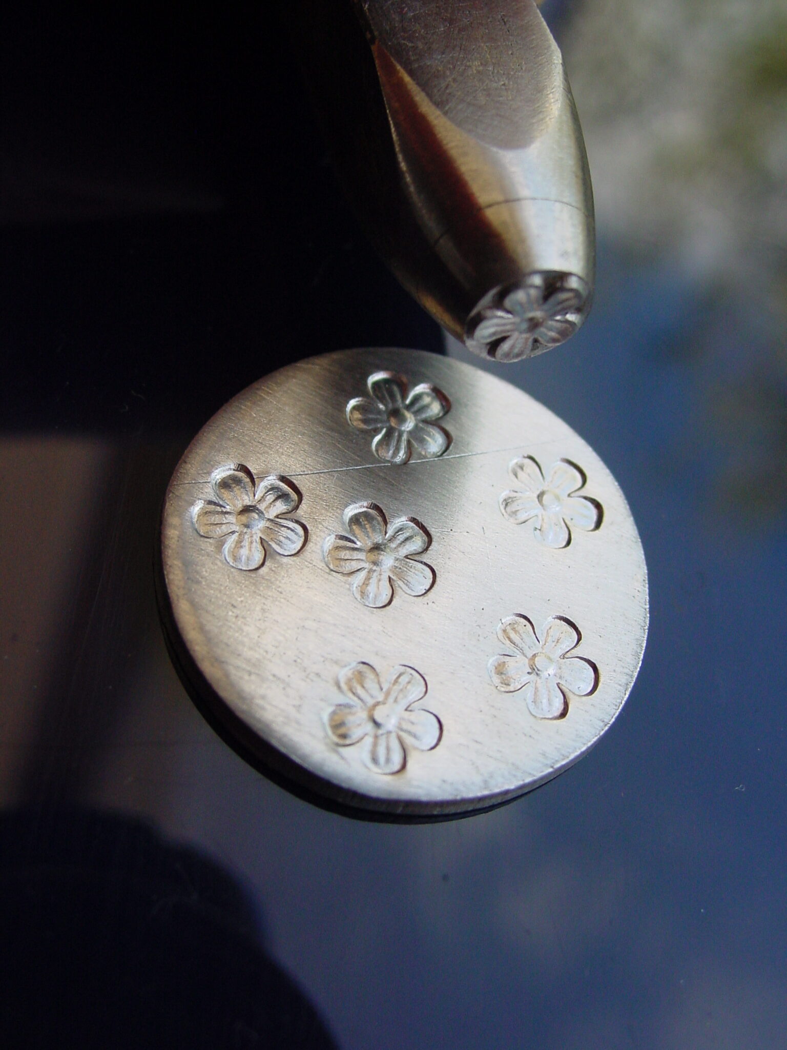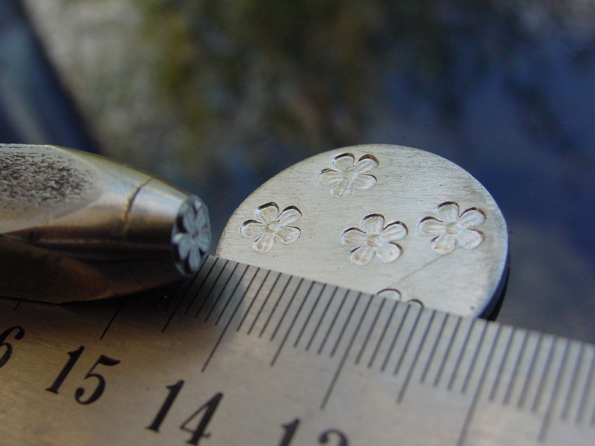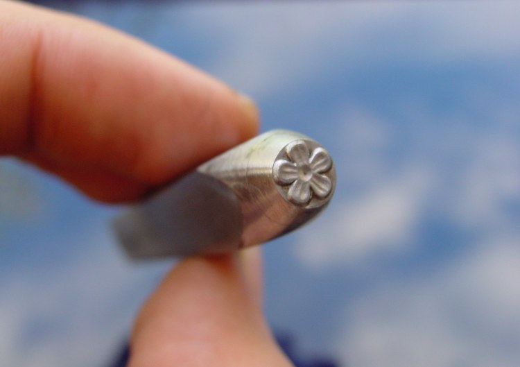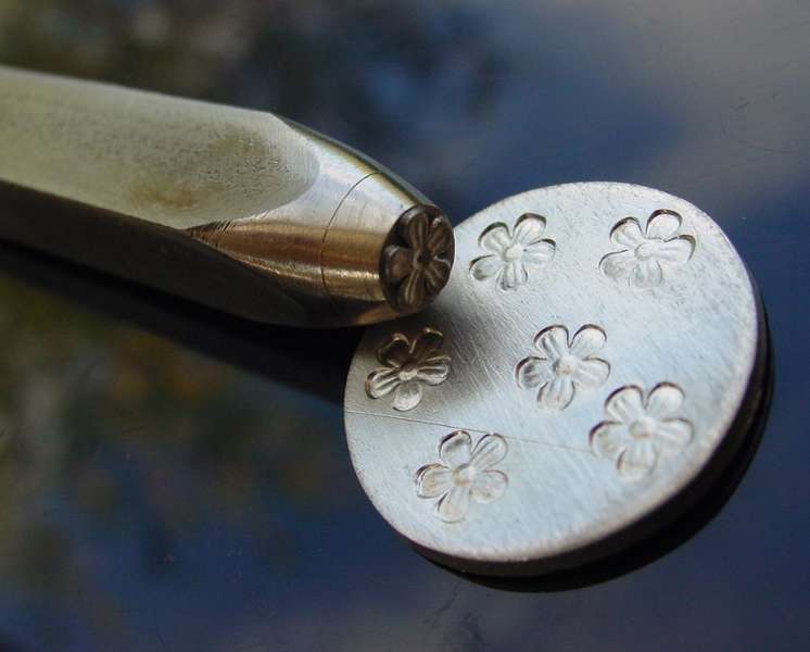 Květ raznice do kovu jsme ručně vyryli do nástrojové oceli 19 421, zakalili a popustili. Při dobrém zacházení Vám vydrží celý život (nesmí však spadnout na tvrdou dlažbu, doporučujeme pracovat v místnosti, kde je měkká podlahová krytina).