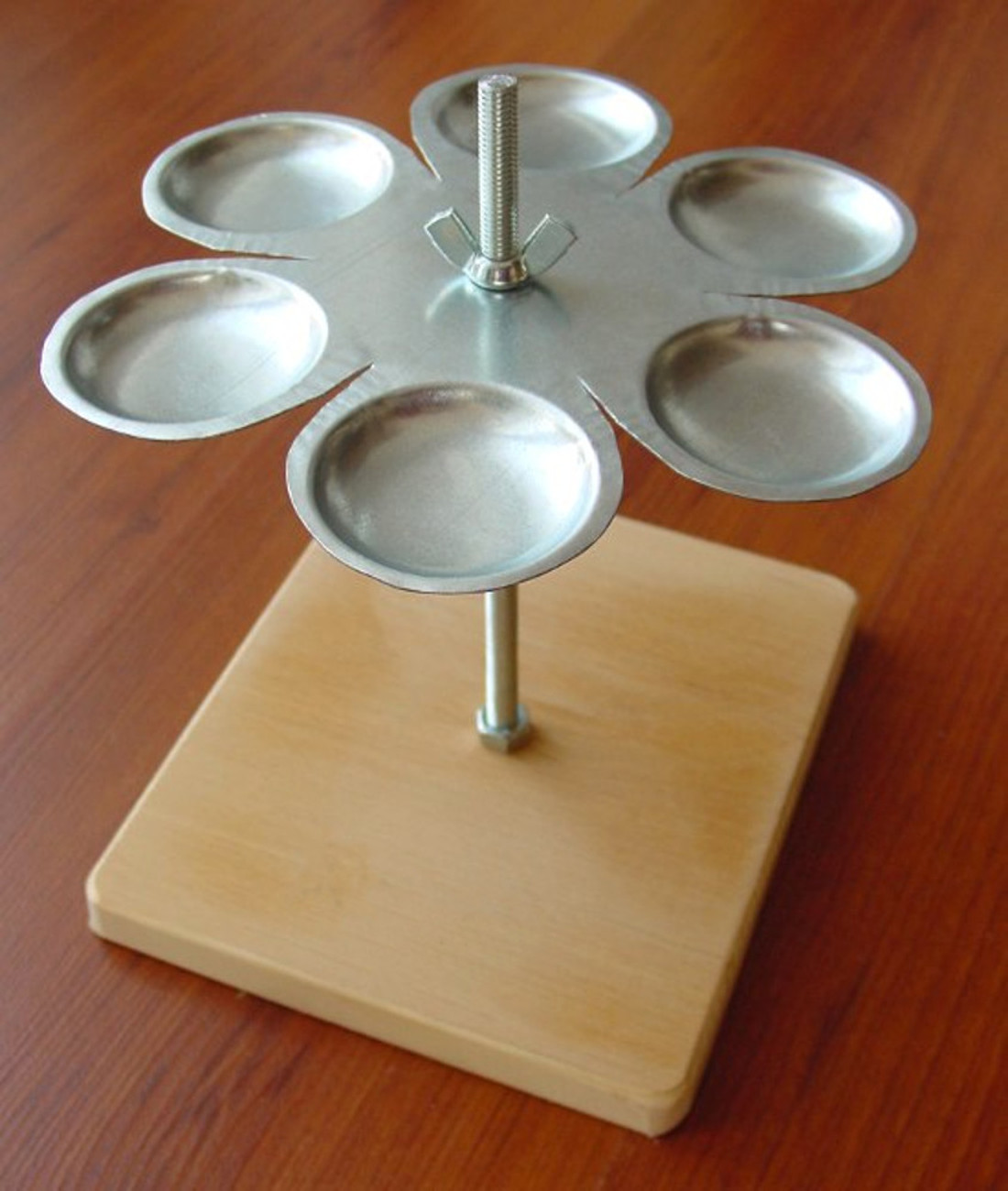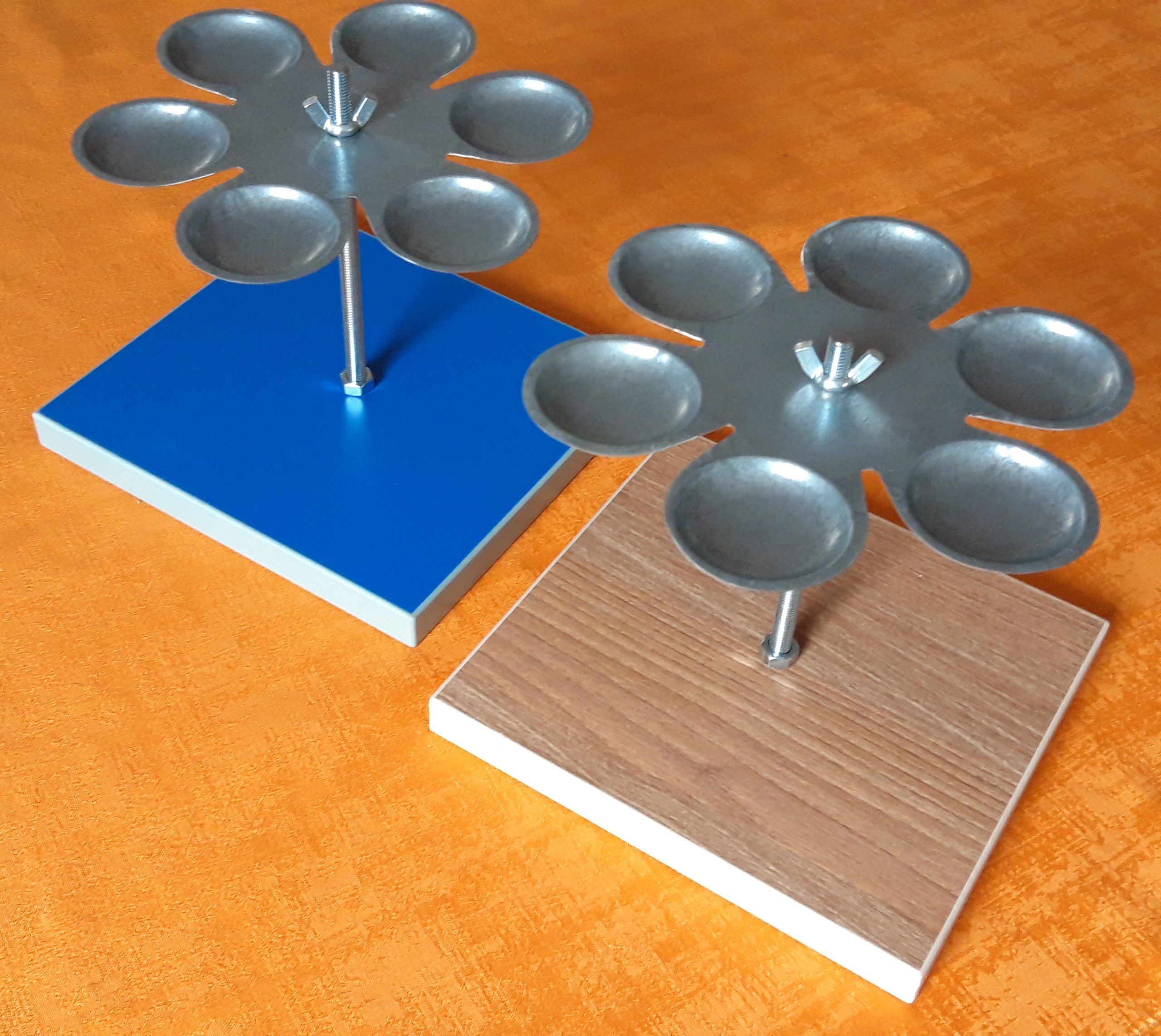 Stojánek na zdobení kraslic barevným voskem. Nalámejte si do mističek barevné voskovky, napíchněte na tužku špendlík s kulatou skleněnou hlavičkou a dejte se do zdobení kraslic. S naším stojánkem Vám práce půjde od ruky. Využijte 6 misek pro 6 různých barev a pokud by Vám nestačili stačí si přikoupit další šesti-misku: https://mincovnadukat.sk/produkt/6-misky-pro-dalsi-barvy-na-stojanek/