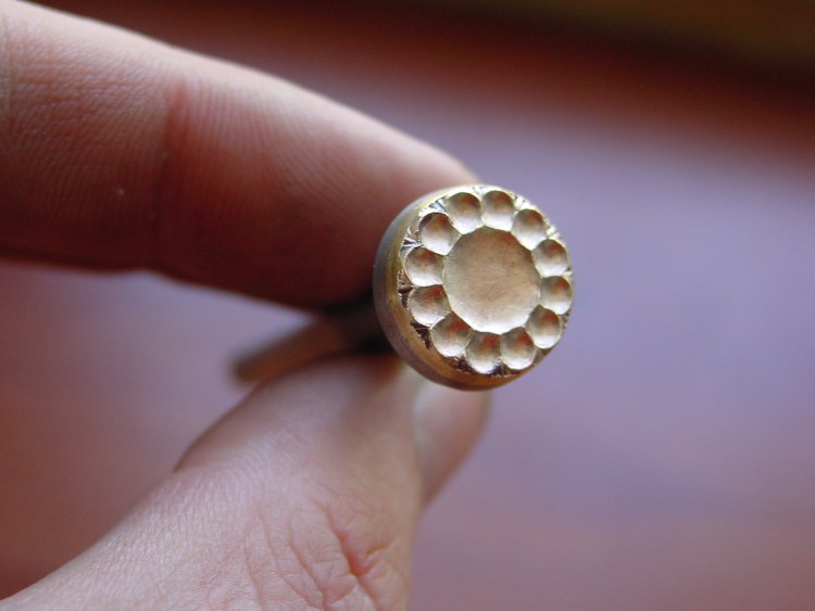 Razidlo s plastickým motivem středu květu o průměru 13,5 mm. Pro Vaše tvoření z kůže. Razidlem lze vytváře různé kombinace tvarů, kříže vícekvěty, cesty atd.