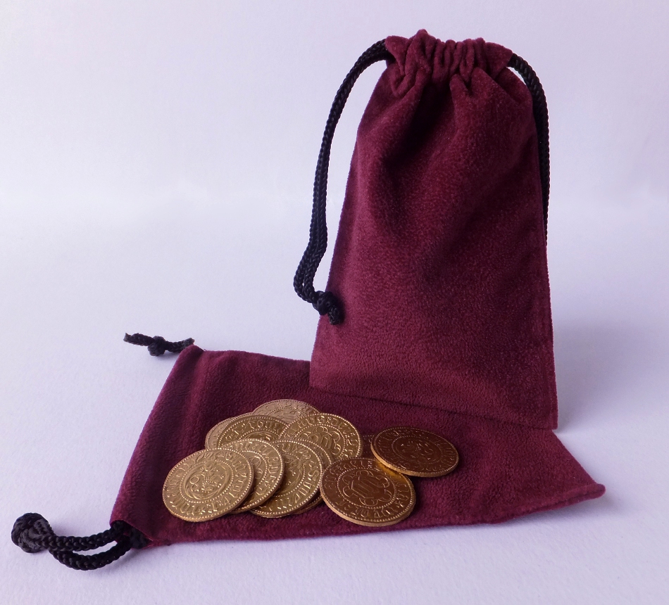 Měšec z jednostranného sametu, vínové barvy, ke stažení provázkem. Vhodný pro mince, které u nás můžete zakoupit. Rovněž se do něj mohou ukrýt různé poklady či šperky. Zabalte svůj dárek netradičně…