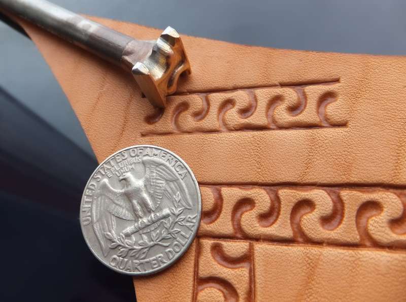 Razidlo s plastickým motivem meandru pro zdobéní okrajů o velikosti 10 x 11mm (6/16“ x 6/16“). Pro Vaše přáníčka, tvoření z kůže. Razidlem lze vytvářet cesty.